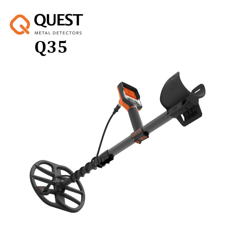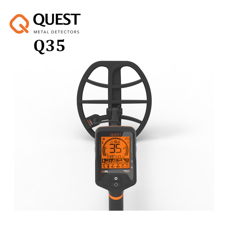 A Quest Q35 3 választható keresési frekvenciával rendelkezik, és 5 méteres mélységig teljesen vízálló. Beépített rádiómodullal és Quest Wirefree Lite vezeték nélküli fejhallgatóval rendelkezik. 28 x 26 cm-es DD Raptor11 keresőtekerccsel van felszerelve a még nagyobb mélység és érzékenység érdekében. A Q35 könnyű, kompakt, ergonomikus kialakítású és nagyon masszív. A beépített 3000 mAh-s Li-Po akkumulátor mágneses töltőkábellel tölthető, a narancssárga kijelző háttérvilágítása pedig egyedi megjelenést kölcsönöz.