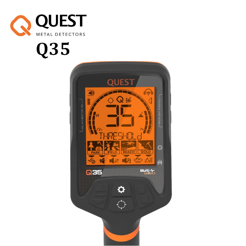A Quest Q35 egy nagyon felhasználóbarát és könnyen kezelhető fémdetektor, ezért minden felhasználó számára alkalmas, fiataltól idősig, tapasztalt vagy tapasztalatlan felhasználók számára. A Q35 minden fontos funkcióval rendelkezik, beleértve a pontoskeresést, a hangmegszakítási funkciót, a vasdiszkriminációt és a vas hangerőszabályozását, a gyors visszaállítási sebességet, az 1-től 99-ig terjedő tárgyazonosítót, a kijelző megvilágítását, a hangerőszabályzót, sőt rezgő funkcióval is rendelkezik érzékelőjelként, ezért iIdeális víz alatti kereséshez, zajos környezetben való kereséshez vagy hallássérültek számára is.